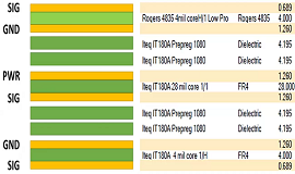 PCB疊層通常包含可能造成可靠性問題的稍微不同的材料。混合 PCB是PCB疊層將包括不同材料的一種情況,通常是標(biāo)準(zhǔn) FR4 層壓板和用于射頻PCB的PTFE層壓板。