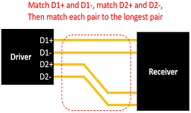 如果您有多個差分對攜帶并行數據,則每個差分對都需要匹配,然后這些對必須彼此匹配。如下所示,其中單個驅動程序正在將并行數據發送到單個接收器。這樣可確保每個差分對都能充分消除共模噪聲,并確保接收并行數據而不會出現位之間的偏差。
