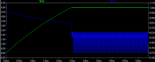 輸出電壓,電流和功率。為此,只需放置理想的負載分量(上圖中的RL)并進行瞬態分析。這將向您展示輸出電壓,功率和電流如何上升以達到穩態。只需在輸出上放置探頭,或添加波形。有關上述電路中電感器的示例電壓波形,請參見下圖。