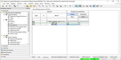 我們要檢查的四個跡線不是這些網絡組的一部分,但是如果需要,我們可以將這些跡線分配給這些網絡組。另一個選擇是在電氣約束集中單獨定義這些走線的阻抗約束。要應用該規則,只需在約束管理器中向下滾動到電氣工作表中的“網絡”部分。當打開“路由”→“阻抗”部分時,您將能夠看到所有網絡以及它們所屬的組。