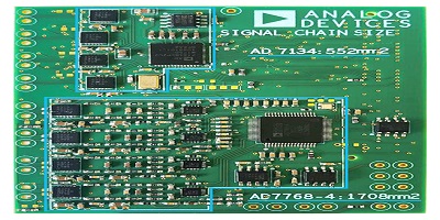 由于顯著減少了設(shè)計(jì)元素的數(shù)量,因此實(shí)現(xiàn)精度性能的努力非常少。這樣可以縮短設(shè)計(jì)時(shí)間,縮短客戶產(chǎn)品上市時(shí)間,簡(jiǎn)化BOM管理并提高可靠性。卸下抗混疊濾波器,驅(qū)動(dòng)器和參考緩沖器將大大減少系統(tǒng)板的面積。儀表放大器可用于直接驅(qū)動(dòng)ADC。例如,對(duì)于AD7134,由于它是僅差分輸入的ADC,因此它具有差分儀表放大器,例如LTC6373可以用作驅(qū)動(dòng)程序。圖14中的比較顯示了基于離散時(shí)間的信號(hào)鏈和基于連續(xù)時(shí)間的信號(hào)鏈的信號(hào)鏈。與等效的基于離散時(shí)間的信號(hào)鏈相比,我們的實(shí)驗(yàn)表明節(jié)省了70%的面積,這使其成為高密度多通道應(yīng)用的絕佳選擇。