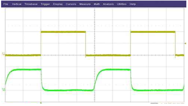 通過軟啟動電容器C5的短路來快速打開/關(guān)閉轉(zhuǎn)換器是調(diào)節(jié)LED亮度的簡便方法。圖2顯示了PWM輸入信號和實際LED電流。這種PWM調(diào)光方法效率更高,因為當SS引腳短路時,轉(zhuǎn)換器將關(guān)閉并且消耗很少的功率。但是,該方法也相對較慢,因為轉(zhuǎn)換器每次接通時必須以受控方式逐漸增加輸出電流,從而在輸出電流上升之前產(chǎn)生非線性的有限死區(qū)時間。。同時,這也將接通時間的最小負載周期降低到10%-20%。在不需要高速和100%PWM調(diào)節(jié)的某些LED應用中,這種方法可能就足夠了。
